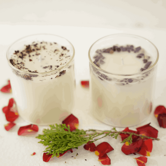 Beautiful Scented Glass candles combo with petals and crystals (Pack of 2)