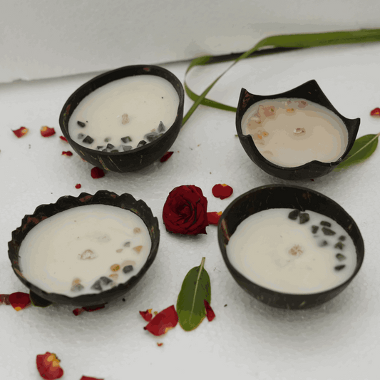 Naturally Scented Soy Wax Coconut shell candles Combo ( Pack of 4. small size)