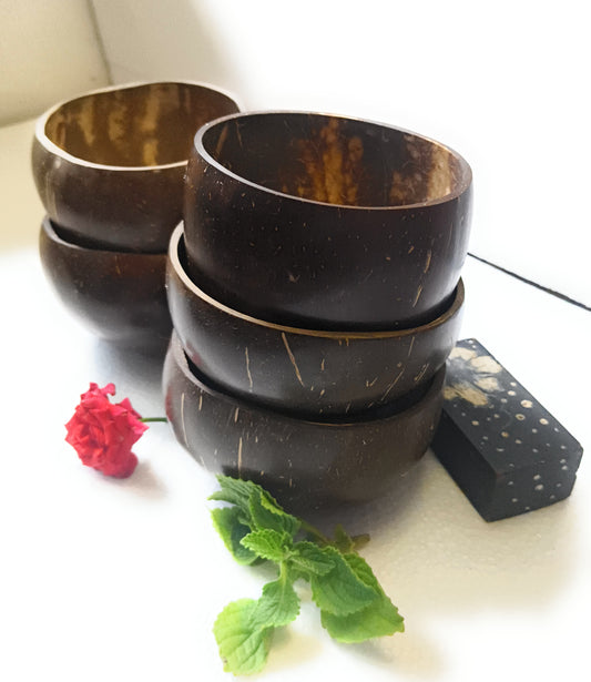 Beetroots Natural Coconut Shell Bowls, 500ml Capacity, Set of 5, Brown, Round Shape, Hand Wash Only