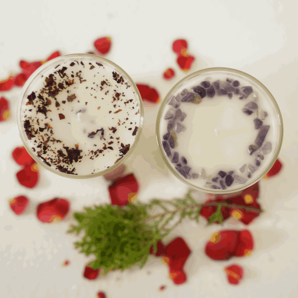 Beautiful Scented Glass candles combo with petals and crystals (Pack of 2)